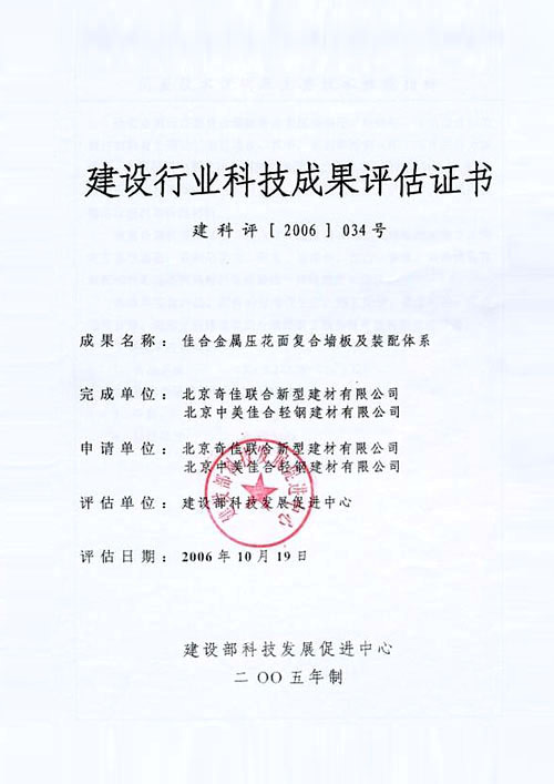 - 2006年已通過建設(shè)部科技成果評估,認(rèn)定為達(dá)到“國際先進(jìn)水平”